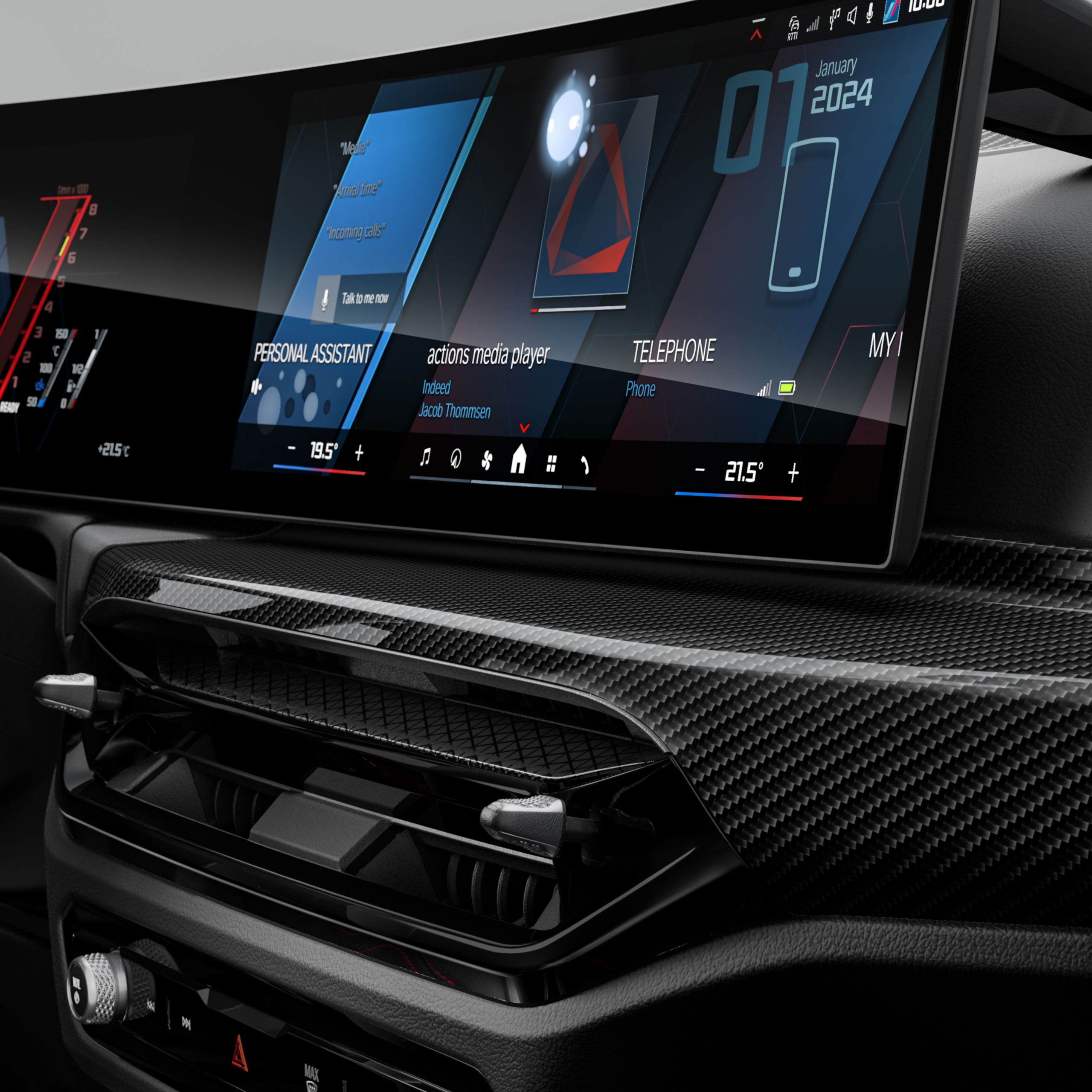 Crafted from open-pored carbon fibre, it creates a motorsport atmosphere with its a unique texture, striking design and M Performance lettering.