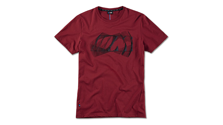 T-shirt with BMW M logo print and side seams that dynamically come round to the front. BMW M design stripe printed on the back of the neck as well as on the rubber-printed label on the front left side seam.